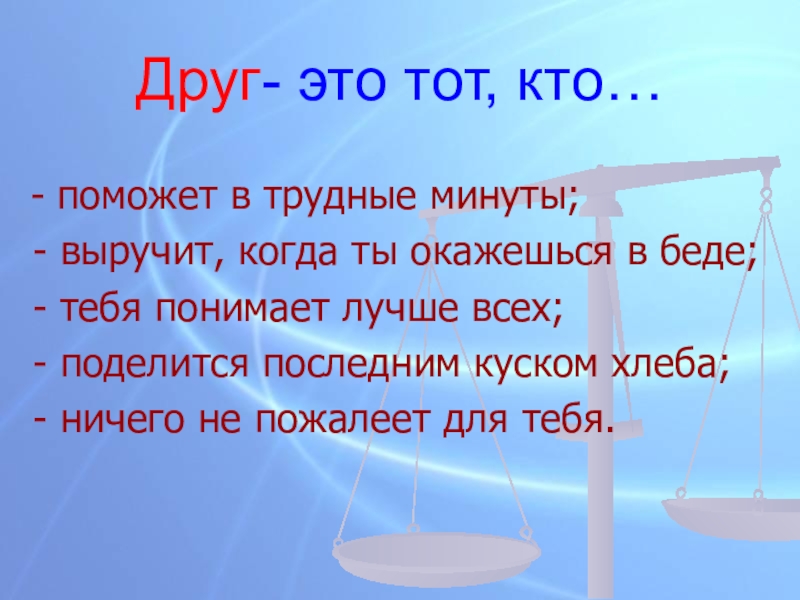 Друг – человек, близкий вам по духу, по убеждениям, на