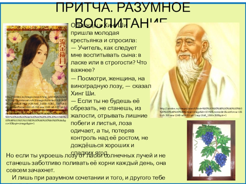 — Если ты не будешь её обрезать, не станешь, из жалости, отрывать лишние побеги и листья, лоза одичает, а ты, потеряв контроль над её ростом, не дождёшься хороших и сладких ягод.
