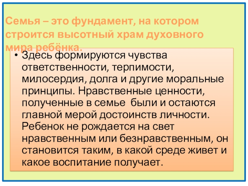 Семья – это фундамент, на котором строится высотный храм духовного мира ребёнка.