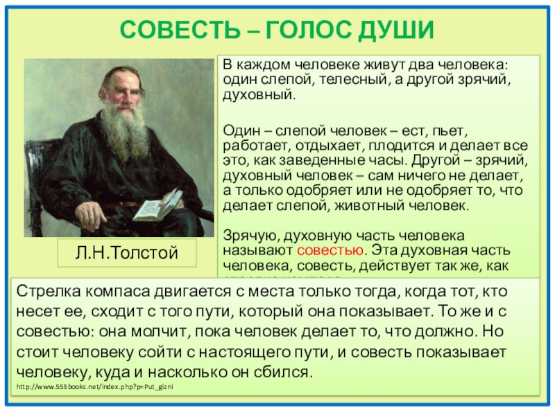Стрелка компаса двигается с места только тогда, когда тот, кто несет ее, сходит с того пути, который она показывает. То же и с совестью: она молчит, пока человек делает то, что должно. Но стоит человеку сойти с настоящего пути, и совесть показывает человеку, куда и насколько он сбился.