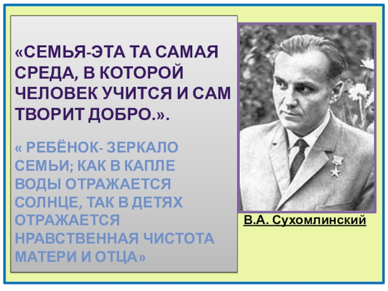 « Ребёнок- зеркало семьи; как в капле воды отражается солнце, так в детях отражается нравственная чистота матери и отца»