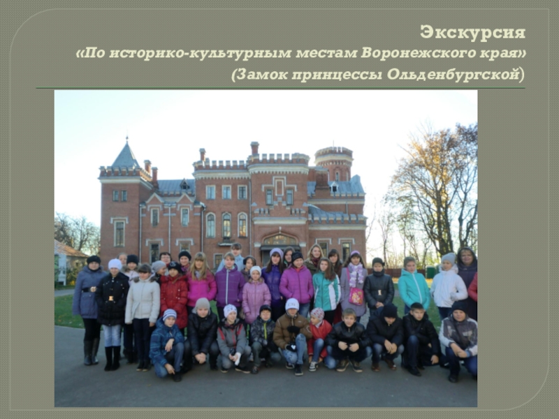Слайд 11Экскурсия «По историко-культурным местам Воронежского края» (Замок принцессы Ольденбургской)