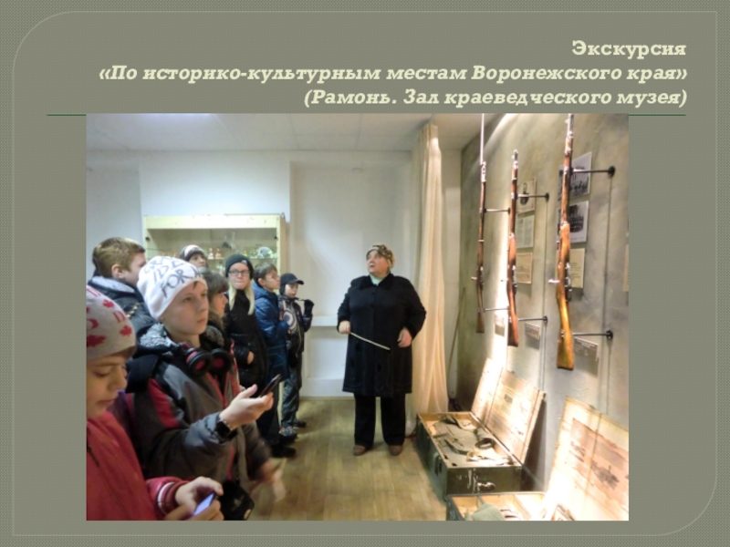 Слайд 12Экскурсия «По историко-культурным местам Воронежского края» (Рамонь. Зал краеведческого музея)
