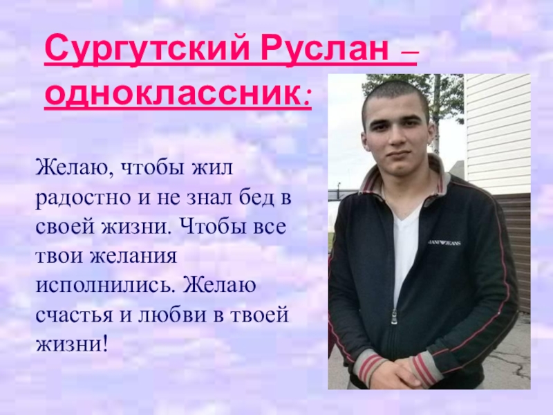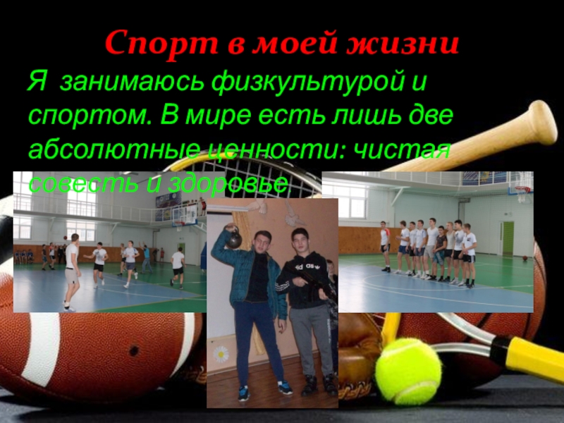 Я занимаюсь физкультурой и спортом. В мире есть лишь две абсолютные ценности: чистая совесть и здоровье.