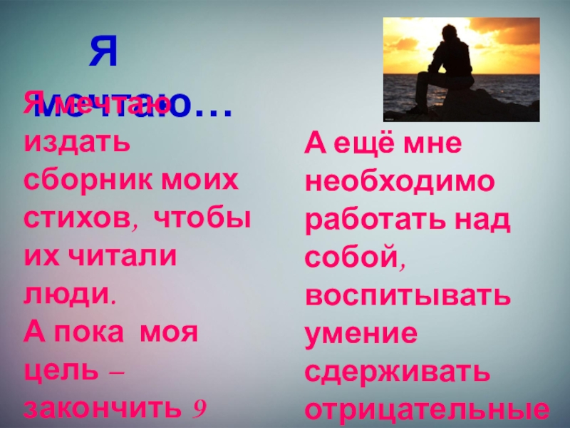 А ещё мне необходимо работать над собой, воспитывать умение сдерживать отрицательные эмоции, учиться быть терпимее.