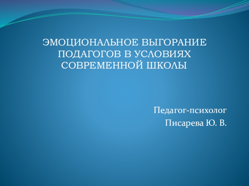 Слайд 1ЭМОЦИОНАЛЬНОЕ ВЫГОРАНИЕ ПОДАГОГОВ В УСЛОВИЯХ СОВРЕМЕННОЙ ШКОЛЫ