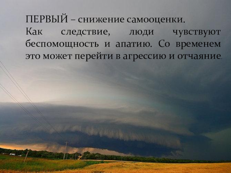 Слайд 9ПЕРВЫЙ – снижение самооценки.