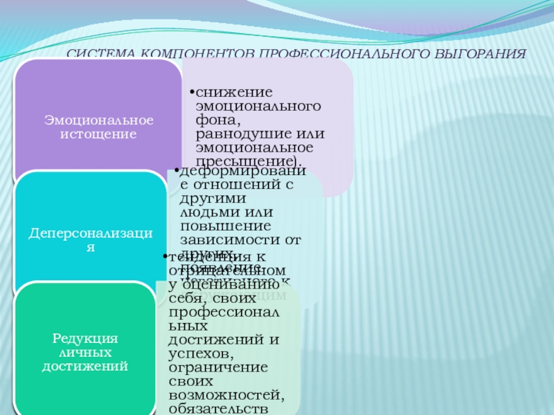 Слайд 18СИСТЕМА КОМПОНЕНТОВ ПРОФЕССИОНАЛЬНОГО ВЫГОРАНИЯ