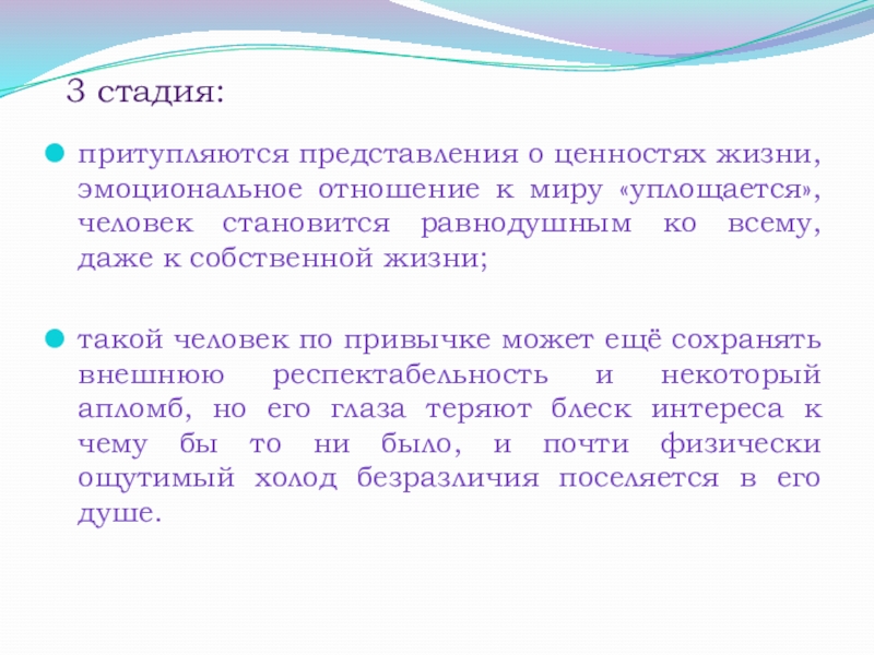притупляются представления о ценностях жизни, эмоциональное отношение к миру