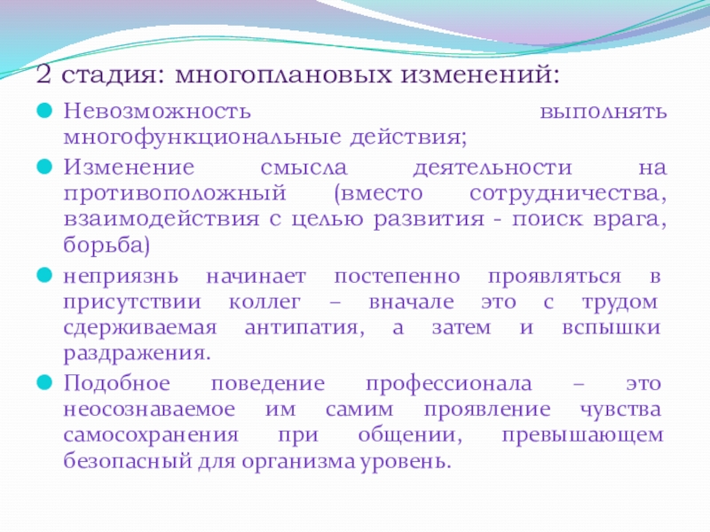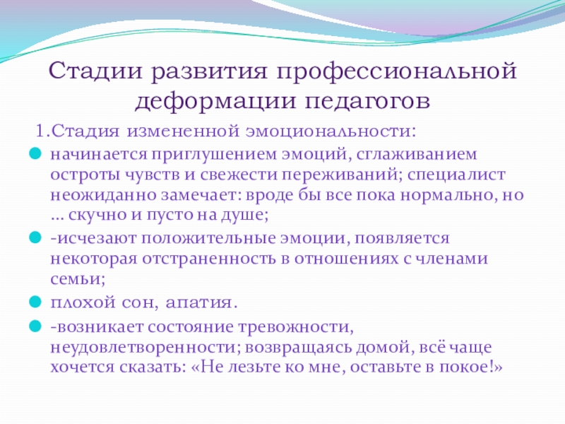 Слайд 5Стадии развития профессиональной деформации педагогов