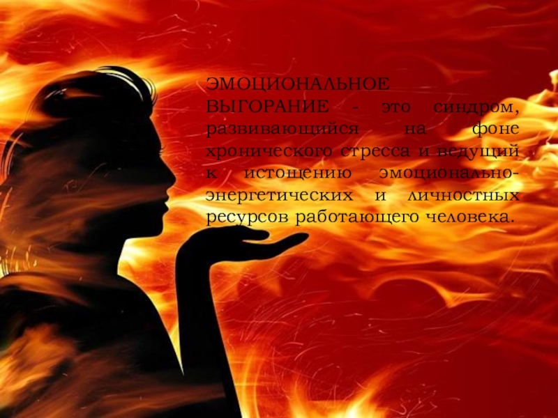 Слайд 3ЭМОЦИОНАЛЬНОЕ ВЫГОРАНИЕ - это синдром, развивающийся на фоне хронического стресса и