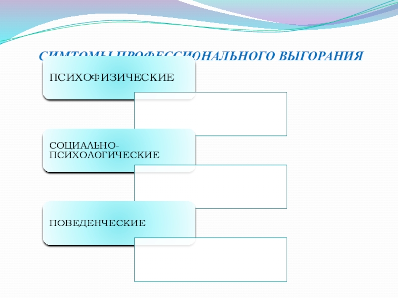 Слайд 12СИМТОМЫ ПРОФЕССИОНАЛЬНОГО ВЫГОРАНИЯ
