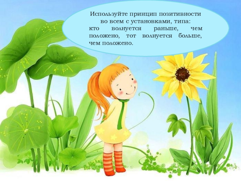 Слайд 34Используйте принцип позитивности во всем с установками, типа: