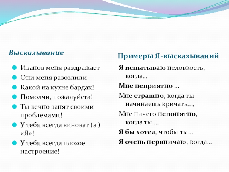 СХЕМА «Я-ВЫСКАЗЫВАНИЯ»