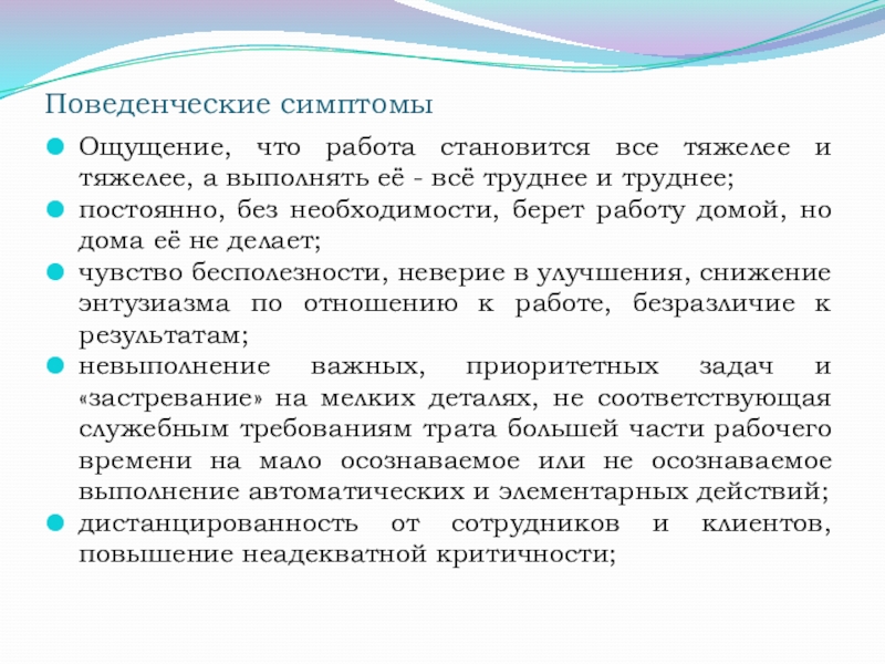 дистанцированность от сотрудников и клиентов, повышение неадекватной критичности;