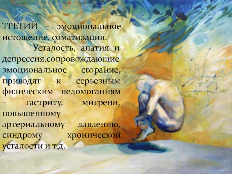 Слайд 11ТРЕТИЙ – эмоциональное истощение, соматизация.