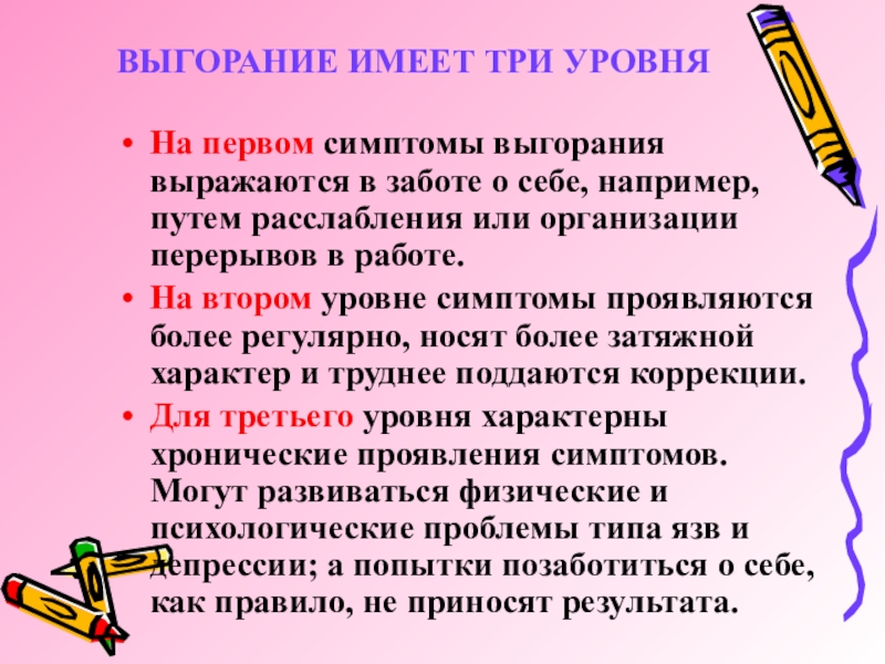 Слайд 5ВЫГОРАНИЕ ИМЕЕТ ТРИ УРОВНЯ