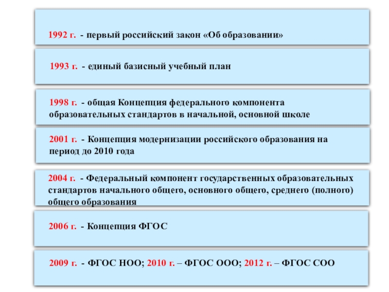 1998 г. - общая Концепция федерального компонента образовательных стандартов в начальной, основной школе