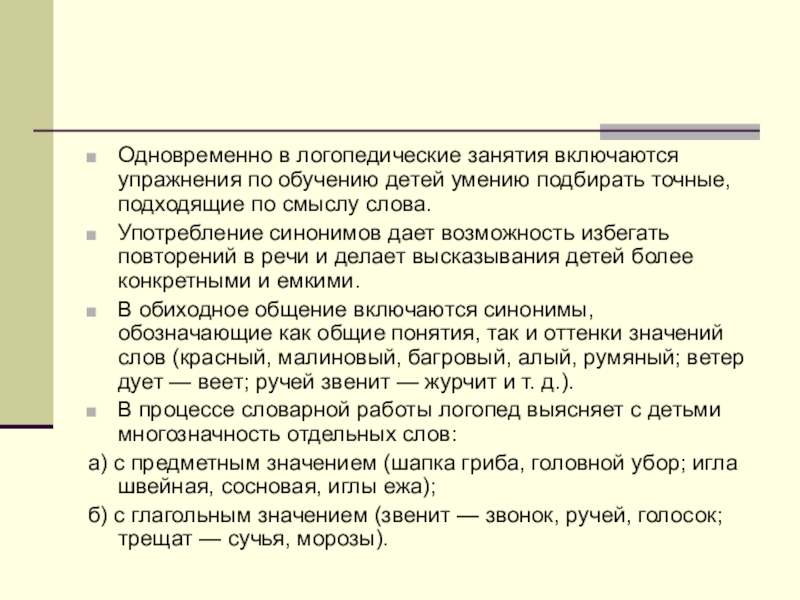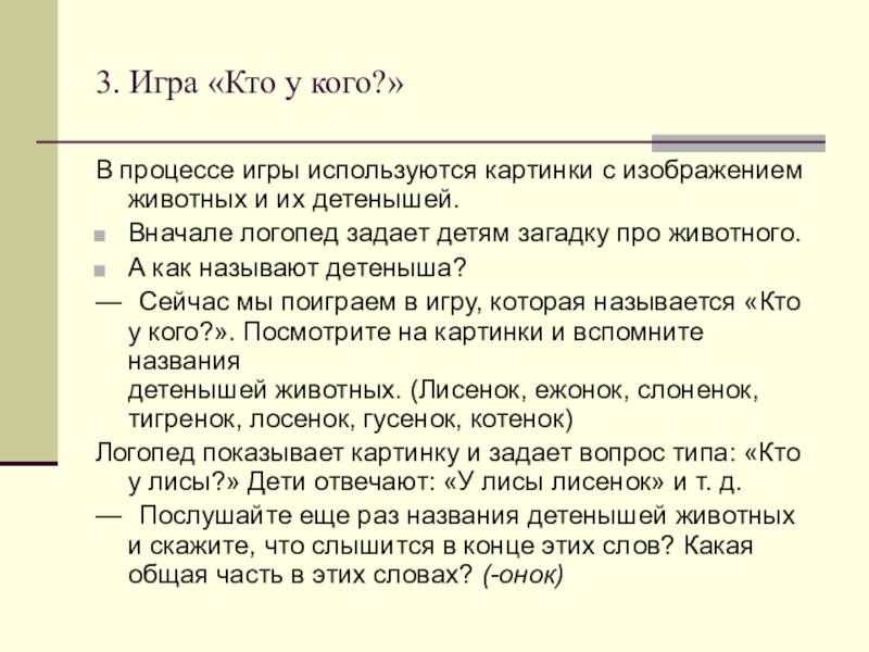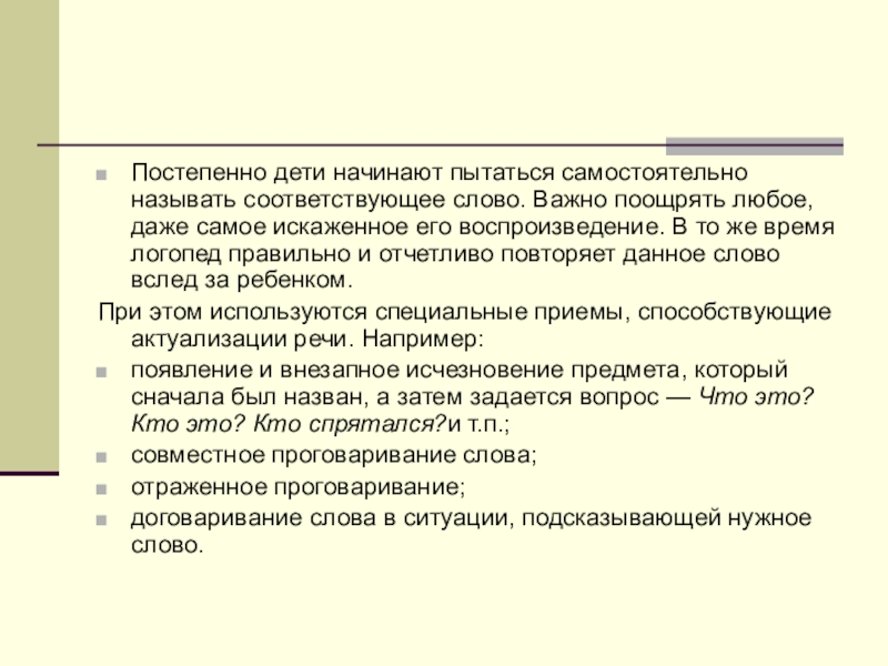 даже самое искаженное его воспроизведение. В то же время логопед правильно и отчетливо повторяет данное слово вслед за ребенком.