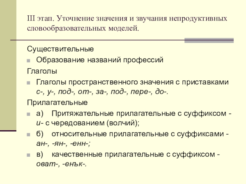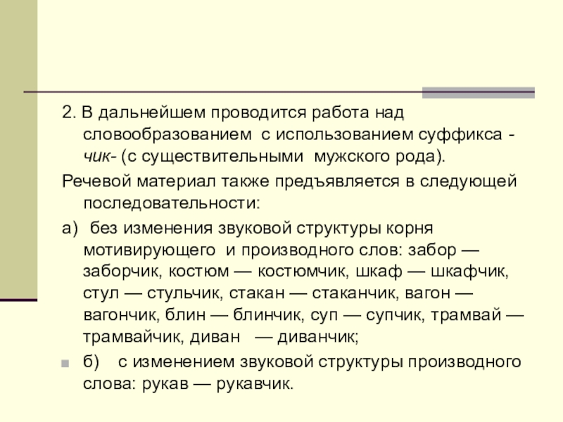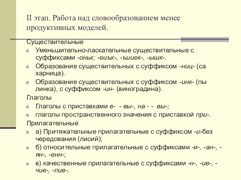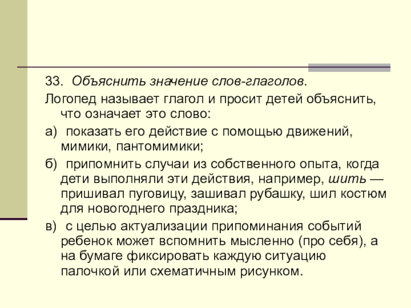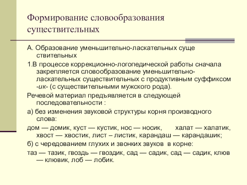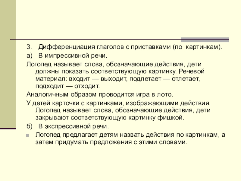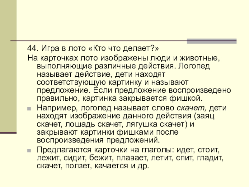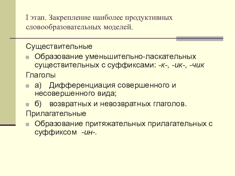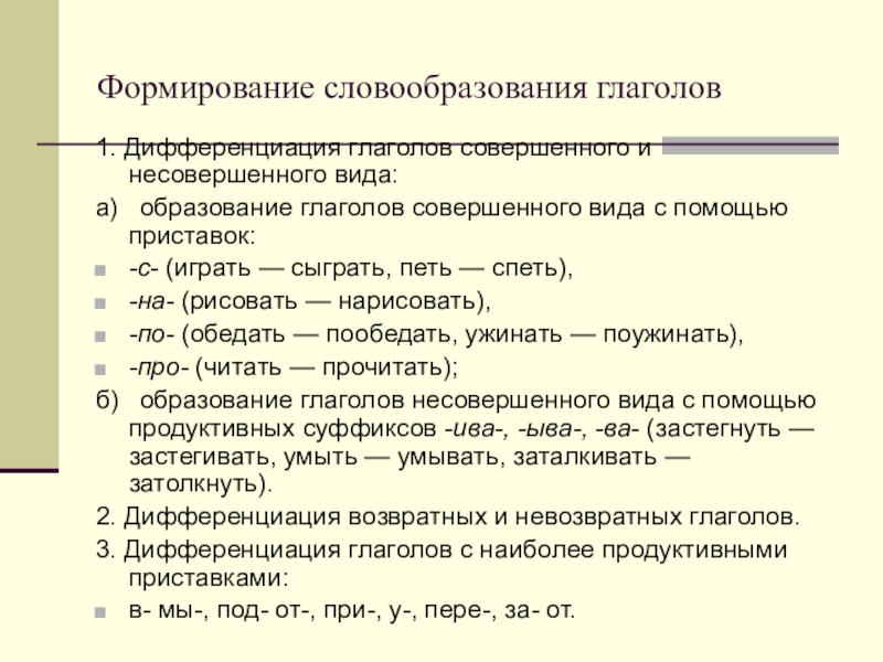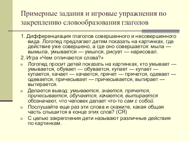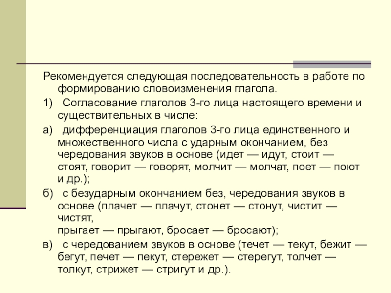 Рекомендуется следующая последовательность в работе по формированию словоизменения глагола.