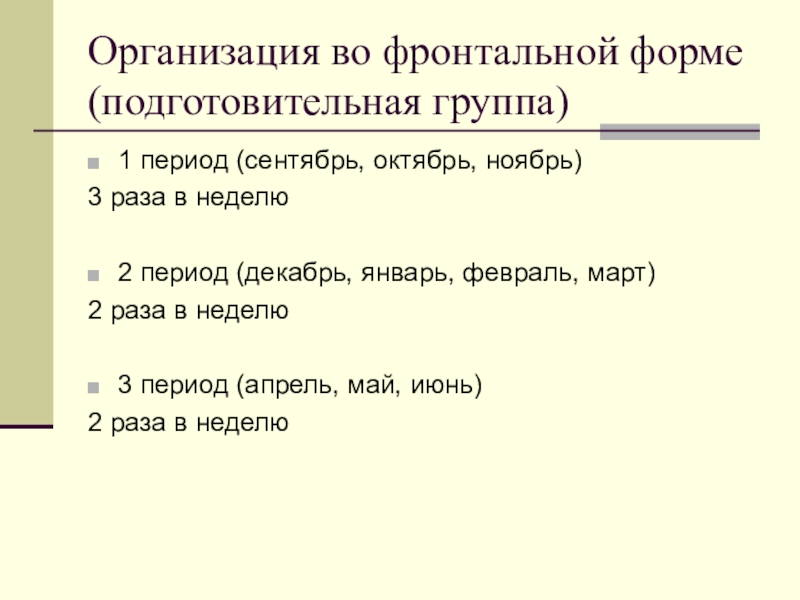 Слайд 5Организация во фронтальной форме (подготовительная группа)