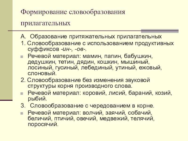 Формирование словоизменения прилагательных у дошкольников с ОНР осуществляется в