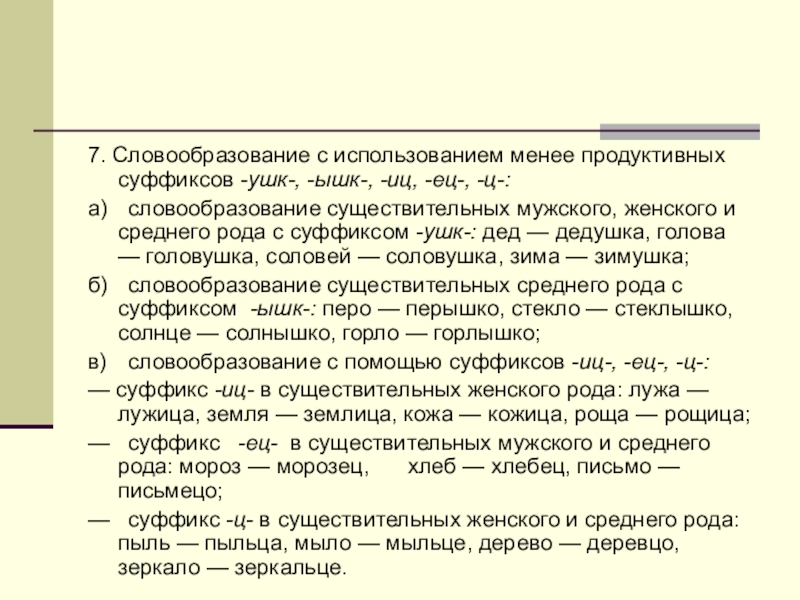 7) Формы с окончанием ей существительных среднего рода с основой на мягкий или шипящий звук в основе начальной формы (ушей, ружей, морей, полей).