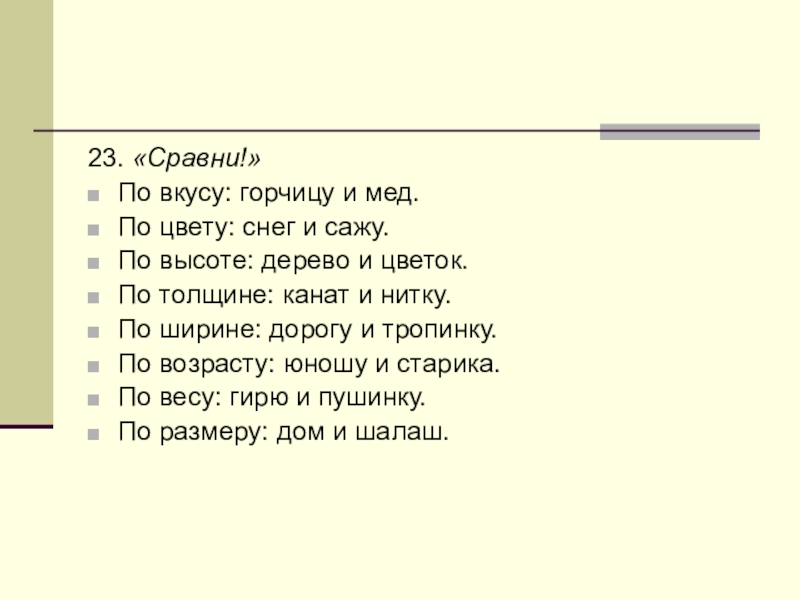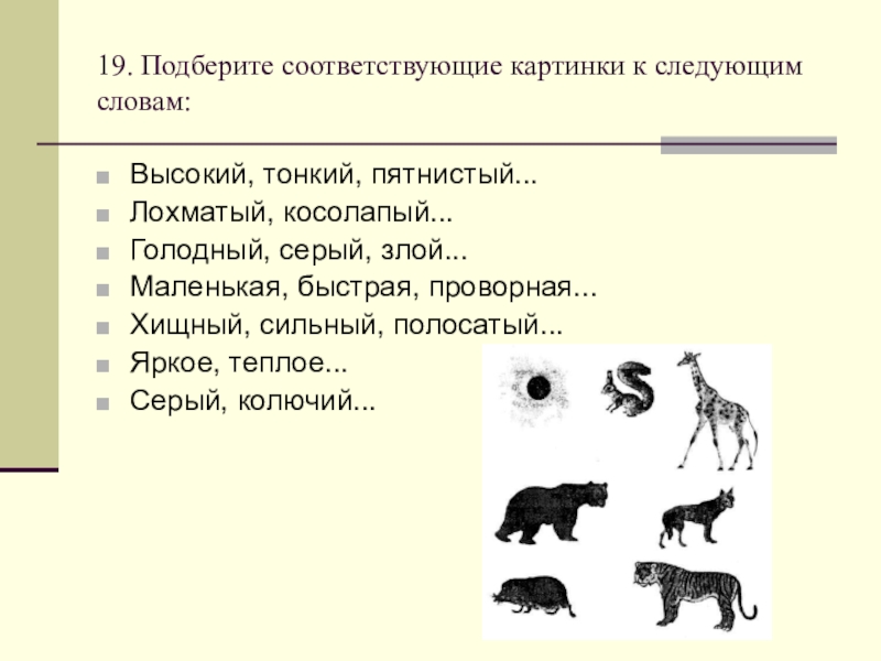 большой — маленький, толстый — тонкий, широкий — узкий, высокий — низкий);