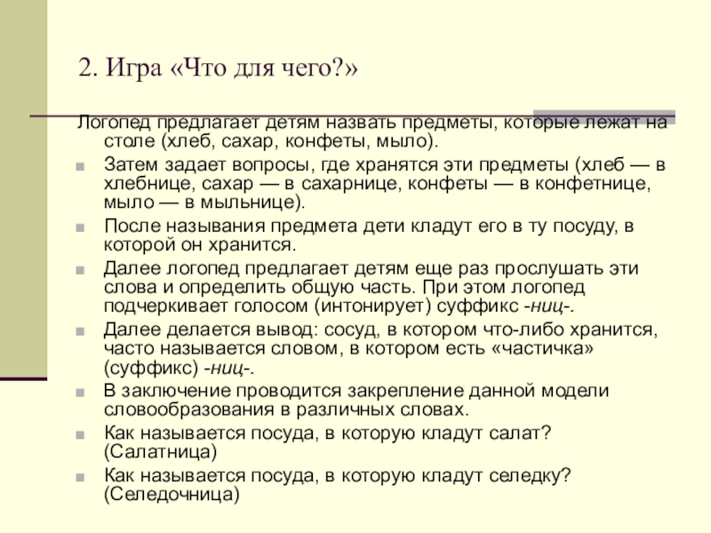 договаривание слова в ситуации, подсказывающей нужное слово.