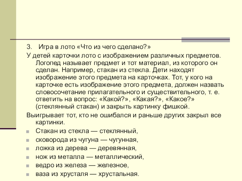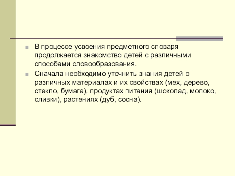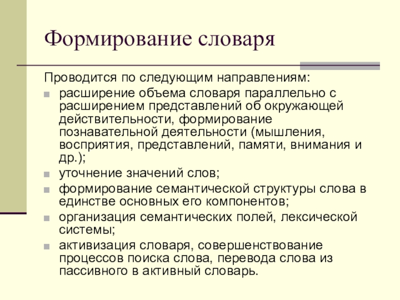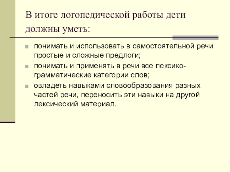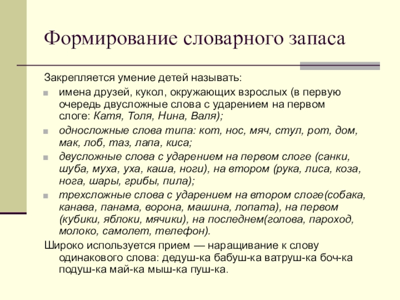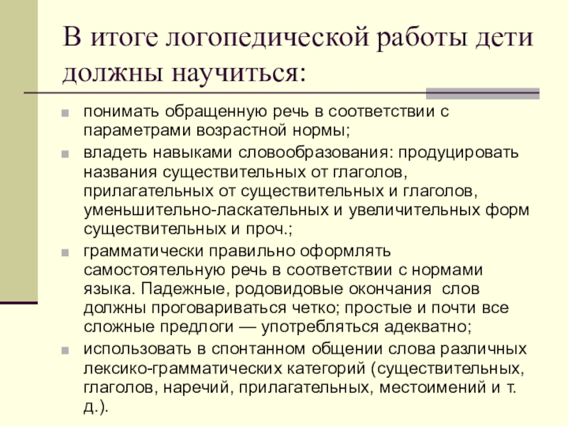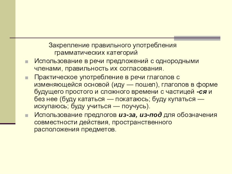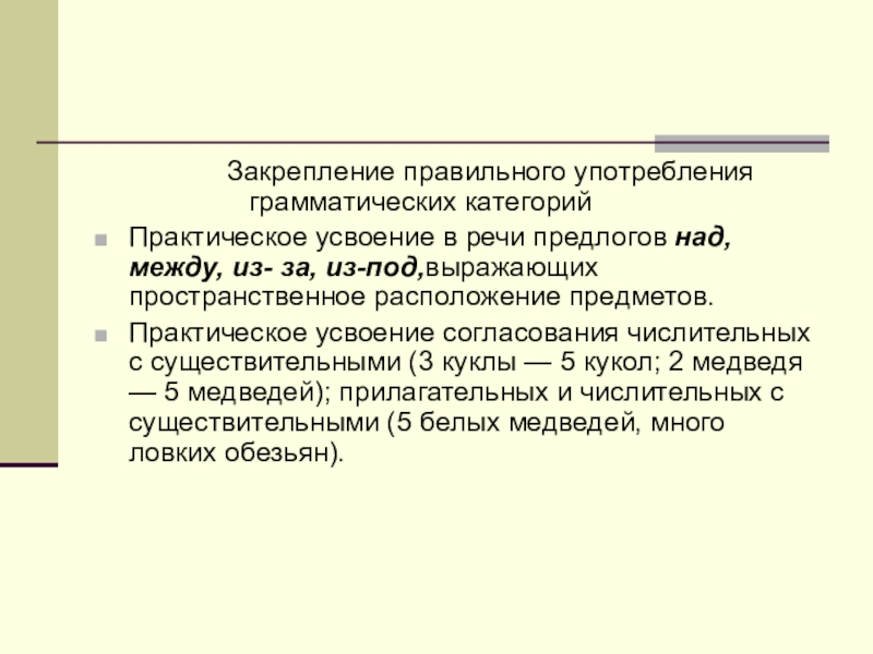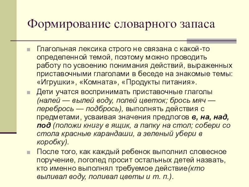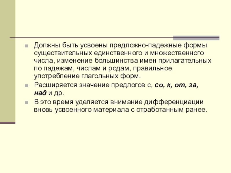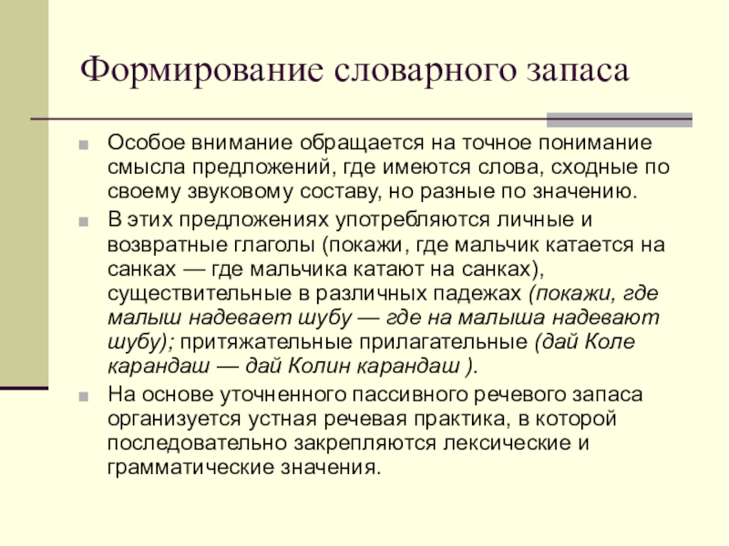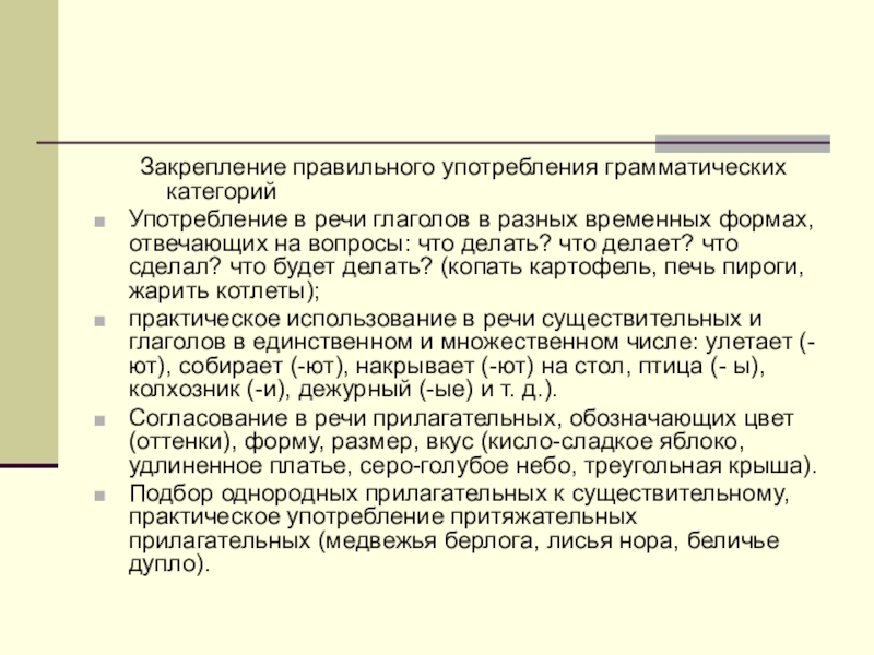 Выделить словарь, грамматические формы, которые дети должны усвоить в активной речи