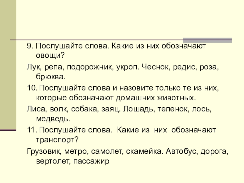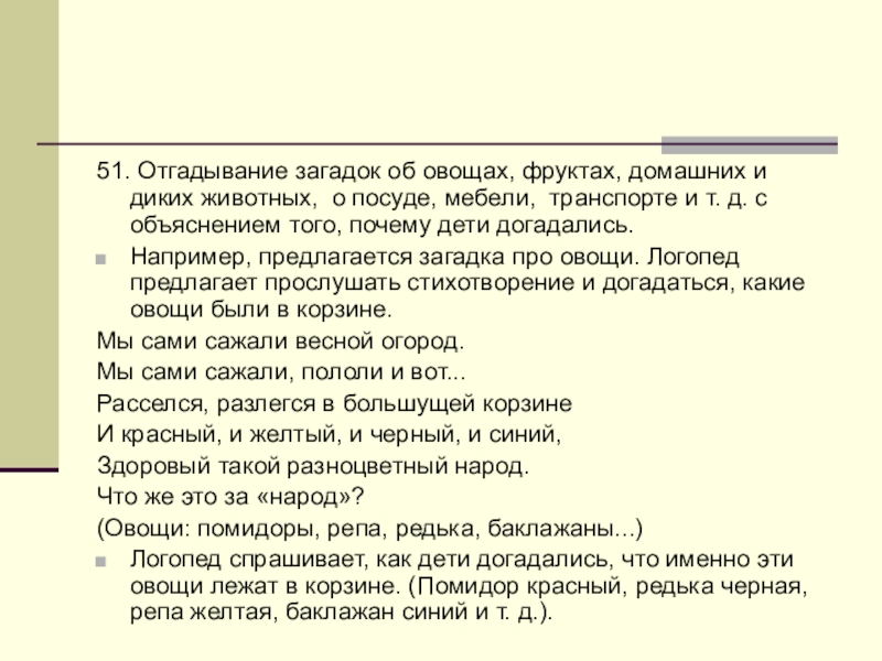 овощи, затем спрашивает каждого ребенка, что он делает: «Катя, что ты сажаешь?» (Я сажаю огурцы.) «Оля, что ты посадила?» (Я посадила редис.) «Вова, что ты посадишь?» (Я посажу капусту) и т. д.