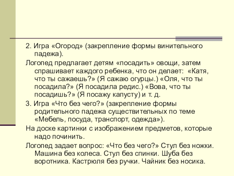 2. Игра «Огород» (закрепление формы винительного падежа).