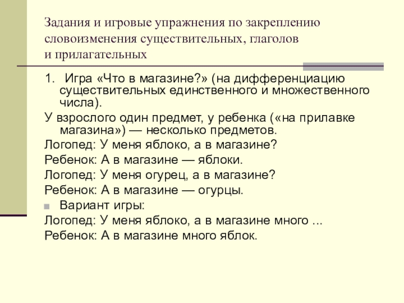 магазине?» (на дифференциацию существительных единственного и множественного числа).