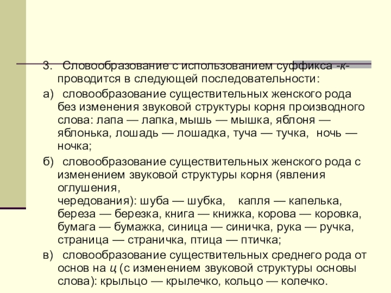 окончанием: а) с сохранением звуковой структуры основы слова(коров, роз, ворон, собак, книг, берез); б) с дополнительной гласной в основе слова (кукол, су мок, веток, белок, скамеек, масок, леек, ромашек, сестер, тропинок, курток, юбок).
