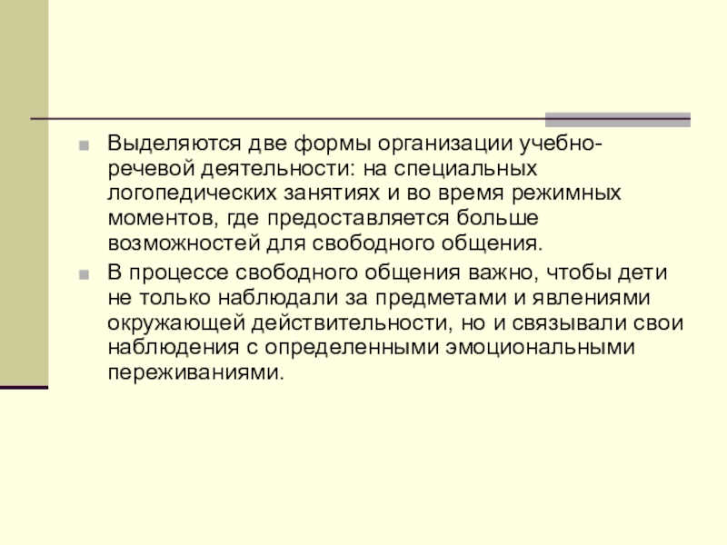 о том, что наиболее доступной для детей является ситуационная речь. Ее доступность объясняется тем, что наглядная, конкретная ситуация, по поводу которой происходит общение, значительно облегчает понимание речи, называние детьми окружающих предметов, производимых действий. В условиях наглядной ситуации ребенок, не знающий того или иного слова, может воспользоваться жестом, указывающим на предмет или действие, местоимением (эта, этот, такое и т. д.). При этом интонация и мимика логопеда также могут способствовать более точному пониманию всех его вопросов, указаний, обращений.