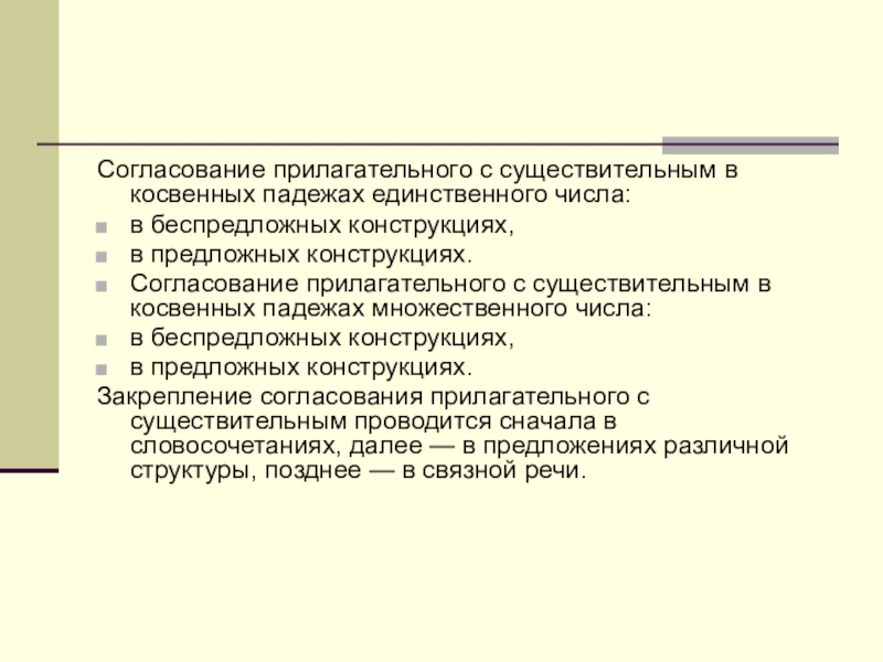 Согласование прилагательного с существительным в косвенных падежах единственного числа: