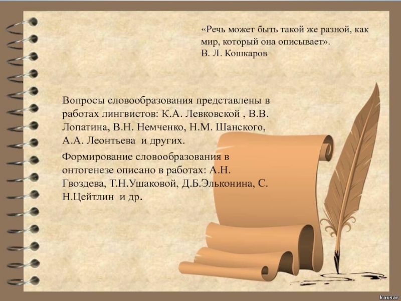 Вопросы словообразования представлены в работах лингвистов: К.А. Левковской , В.В. Лопатина, В.Н. Немченко, Н.М. Шанского,