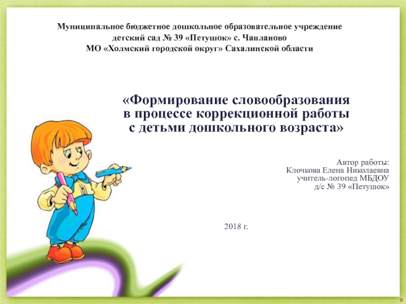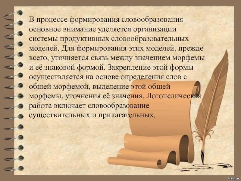 Формирование словообразования в онтогенезе описано в работах: А.Н.Гвоздева, Т.Н.Ушаковой, Д.Б.Эльконина, С.Н.Цейтлин и др.