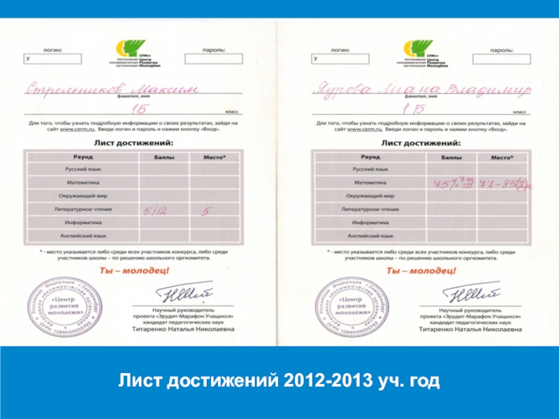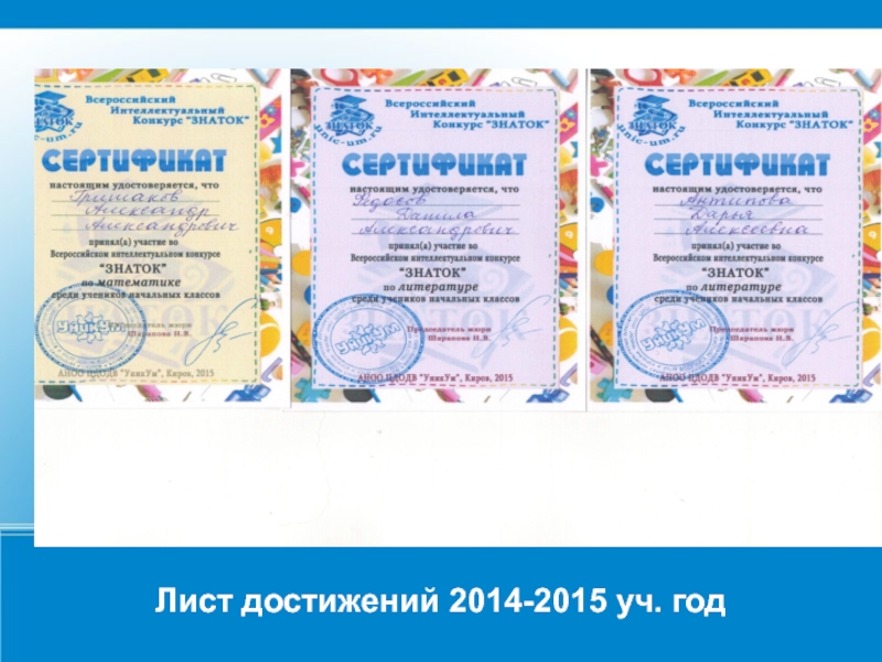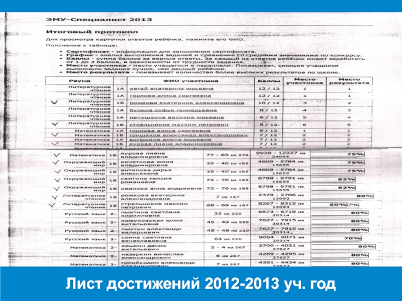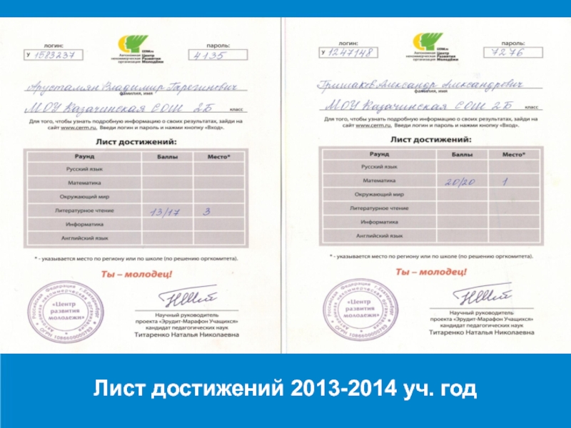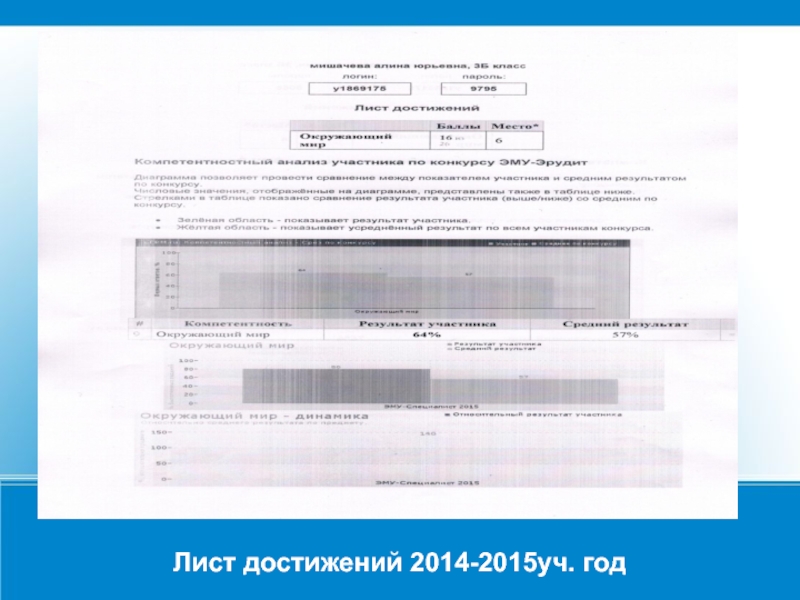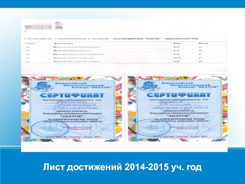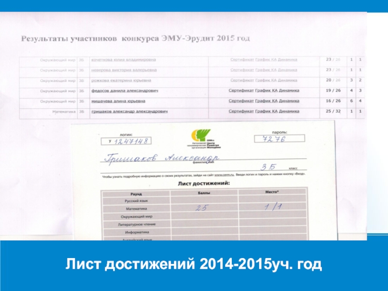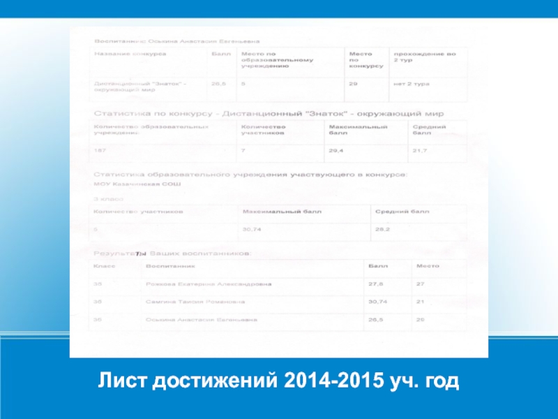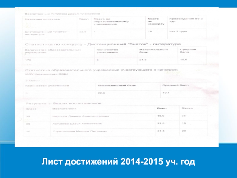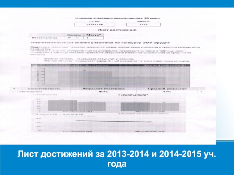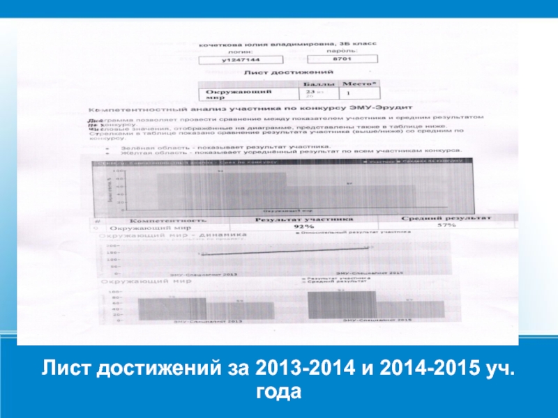Слайд 50Лист достижений за 2013-2014 и 2014-2015 уч. года