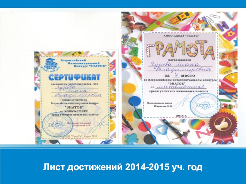 Слайд 51Лист достижений за 2013-2014 и 2014-2015 уч. года