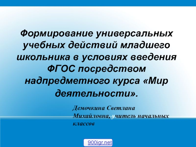 Слайд 1Формирование универсальных учебных действий младшего школьника в условиях введения ФГОС посредством