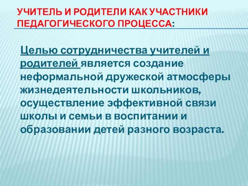 Слайд 10Учитель и родители как участники педагогического процесса: