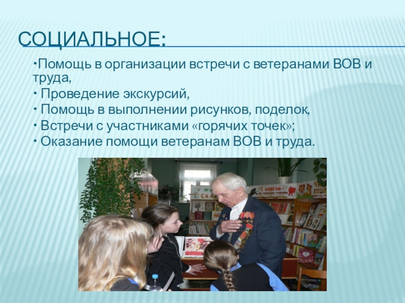 •Помощь в организации встречи с ветеранами ВОВ и труда,