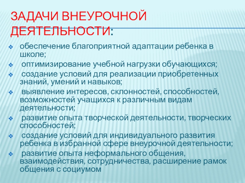 создание условий для индивидуального развития ребенка в избранной сфере внеурочной деятельности;