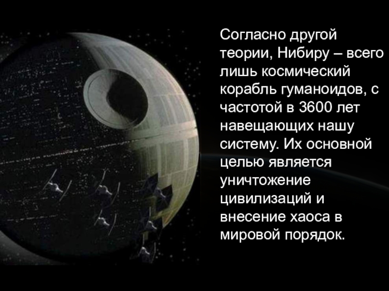 Слайд 23Согласно другой теории, Нибиру – всего лишь космический корабль гуманоидов, с