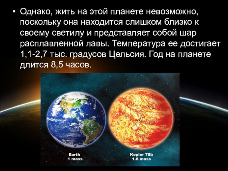 Слайд 32Однако, жить на этой планете невозможно, поскольку она находится слишком близко