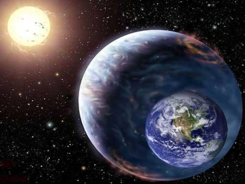 Слайд 27По мнению некоторых ученых, эта планета-двойник в 2,5 раза превышает размеры