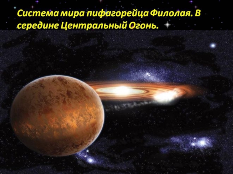Слайд 10Огненный источник Филолай Кротонский назвал Хестнией. Помимо этого центрального источника света