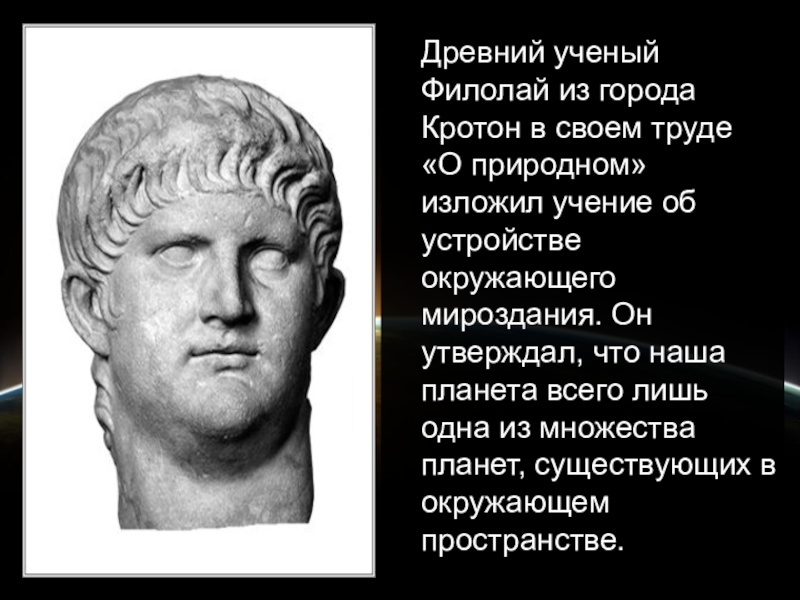 Слайд 9Древний ученый Филолай из города Кротон в своем труде «О природном»