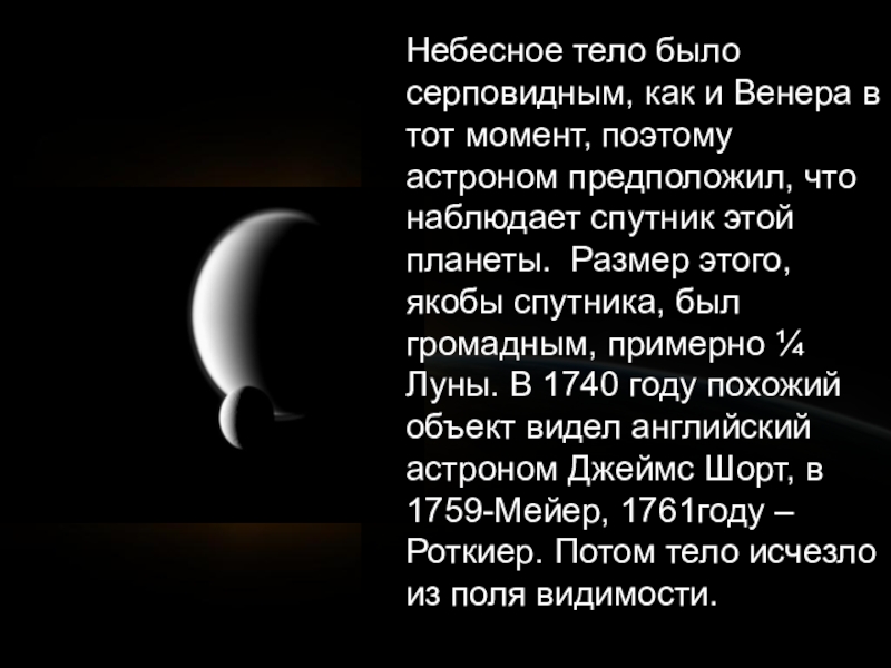 Слайд 14Небесное тело было серповидным, как и Венера в тот момент, поэтому